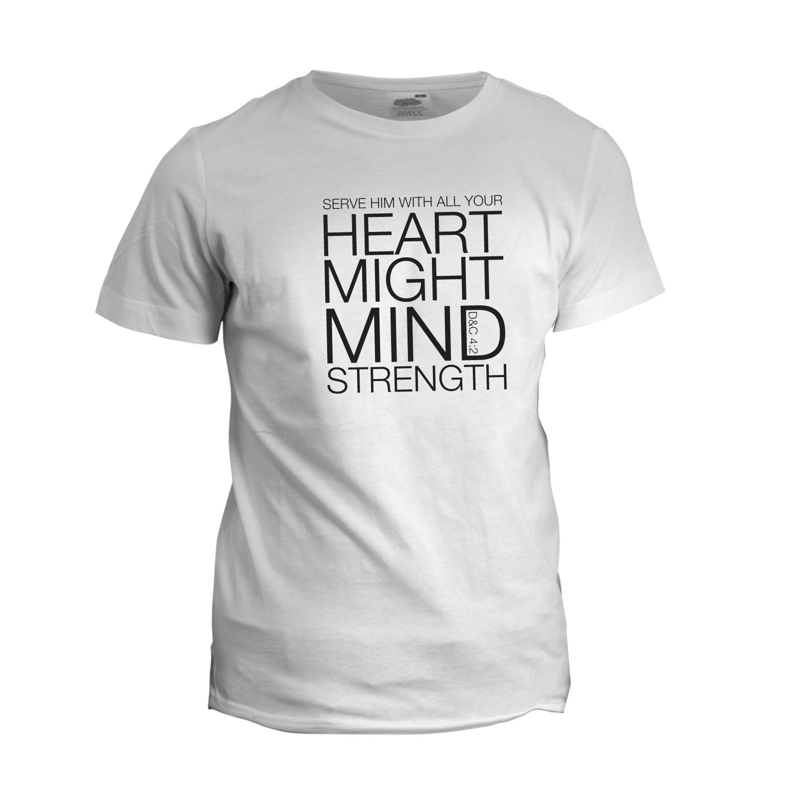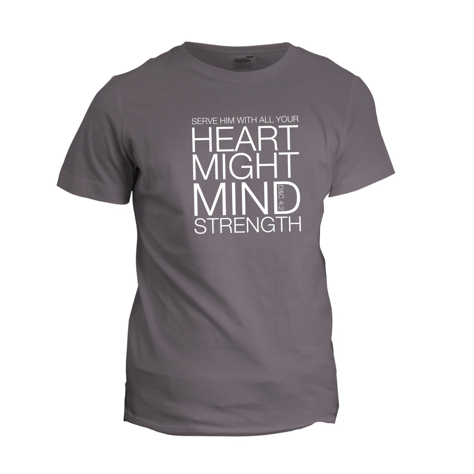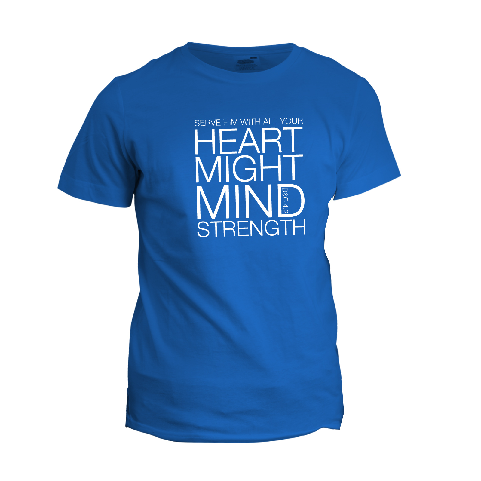 Serve Him LDS Missionary Shirt. Our Serve Him Missionary shirt has the words from Doctrine and Covenants 4:2: Serve him with all your heard, might, mind, strength emblazoned in large letters on the front. Missionaries love our shirts for P-day.