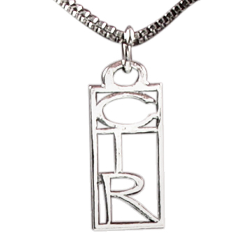 This sterling silver square CTR necklace comes on a 18″ box chain. The perfect addition to the jewelry collection of any LDS woman.
