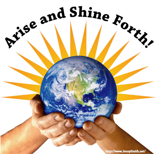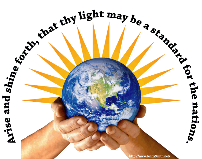 This image is one I created for the 2006 LDS Mutual theme, “Arise and Shine Forth.” It has a globe being held in male hands with the rays of the sun shining behind it.
