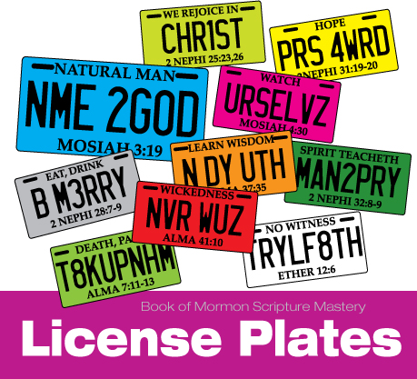 This year I am putting all the Book of Mormon Scripture Mastery license plates on one post so none of you get confused. This is the all-on-one-sheet version in color and black and white. These are the new 2013 scripture mastery passages.