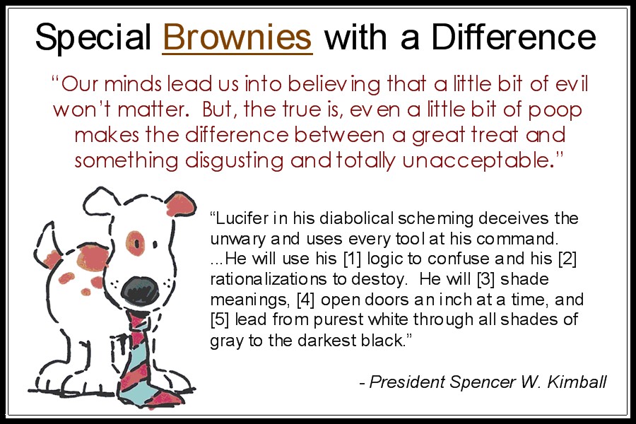 The father then told his children how the movie they wanted to see was just like the brownies. Our minds are leading us into believing that just a little bit of evil won’t matter. But, the truth is even a little bit of poop makes the difference between a great treat and something disgusting and