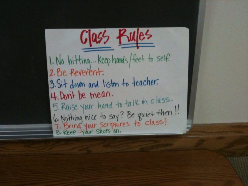 I visited another unit building this weekend and noticed these classroom rules in one room. Based on the content of these rules, I assume that the class and teacher worked together to establish them at the beginning of the year.