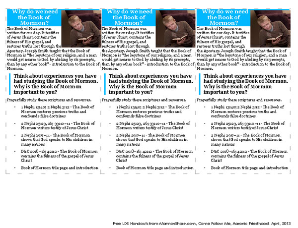 Here are some Come Follow Me Weekly Reading Assignment cards for the Aaronic Priesthood. These are for April CFM lessons on the Apostasy and Restoration. There is a page of cards for each of the weekly lesson topics. Print enough copies of the page so that each member of your class can have a card to take home. What you’ll find on each card: