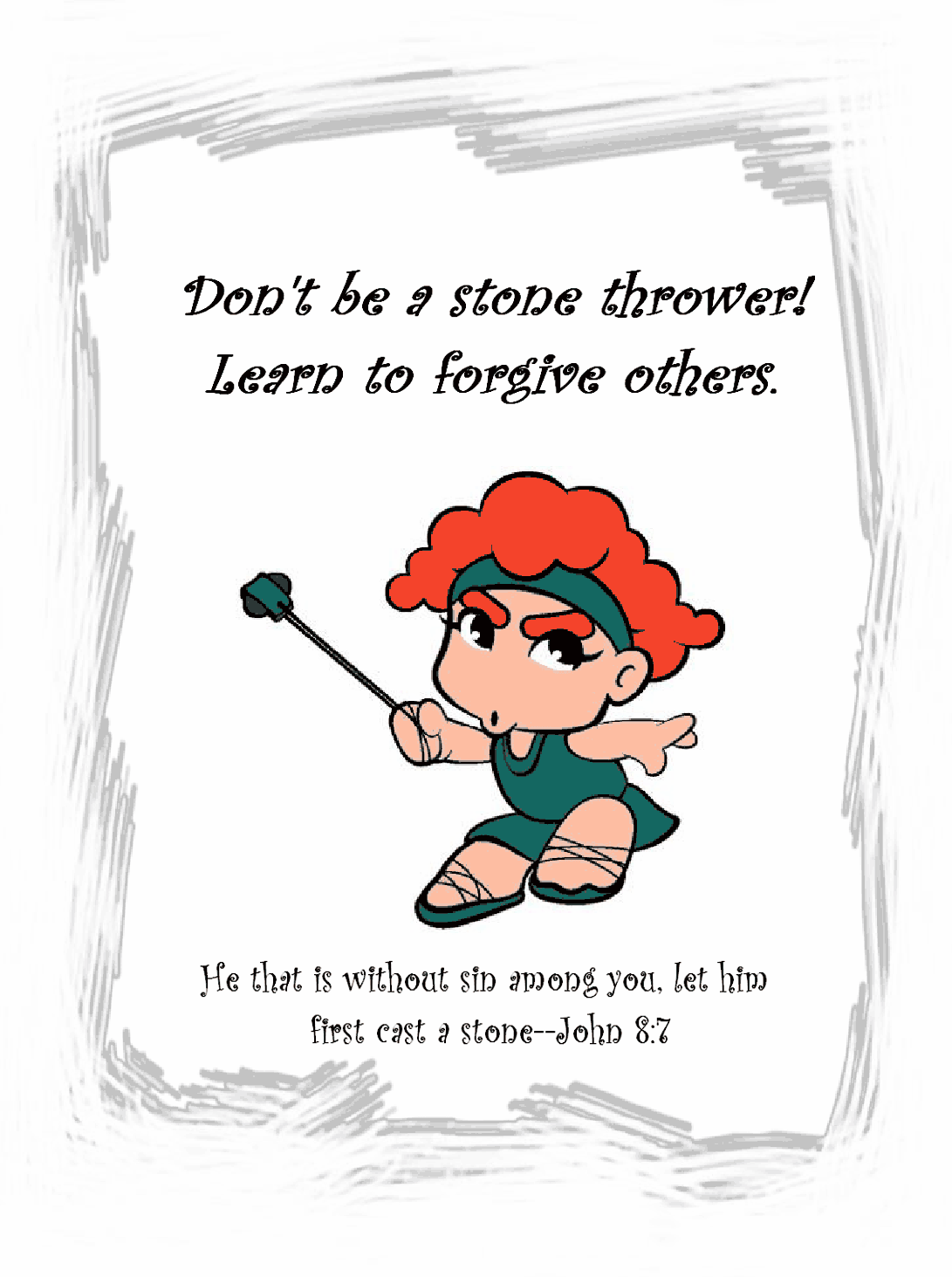 This handout for use during the lesson was submitted by Laurel C. to accompany Young Women Manual 1, Lesson 23: Forgiveness. It has the message: “Don’t be a stone thrower! Learn to forgive others. He that is without sin among you, let him throw the first stone.”