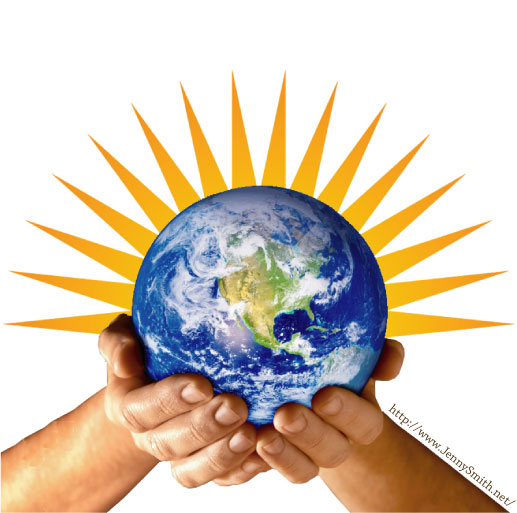 This image is one I created for the 2006 LDS Mutual theme, “Arise and Shine Forth.” It has a globe being held in male hands with the rays of the sun shining behind it.