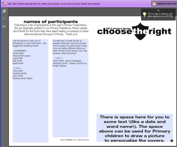 This is a Sacrament Meeting program cover for the 2012 Primary Theme, Choose the Right.