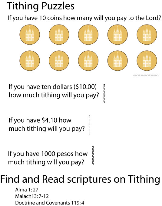 This tithing file folder game has 3 pages. Click on the file folder games link below to find the other pages.