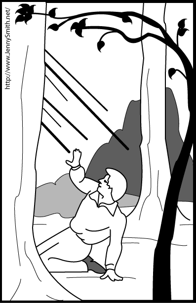 Joseph Smith’s First Vision, based on the image from the Gospel Art Picture Kit. Black and White, grayscale.
