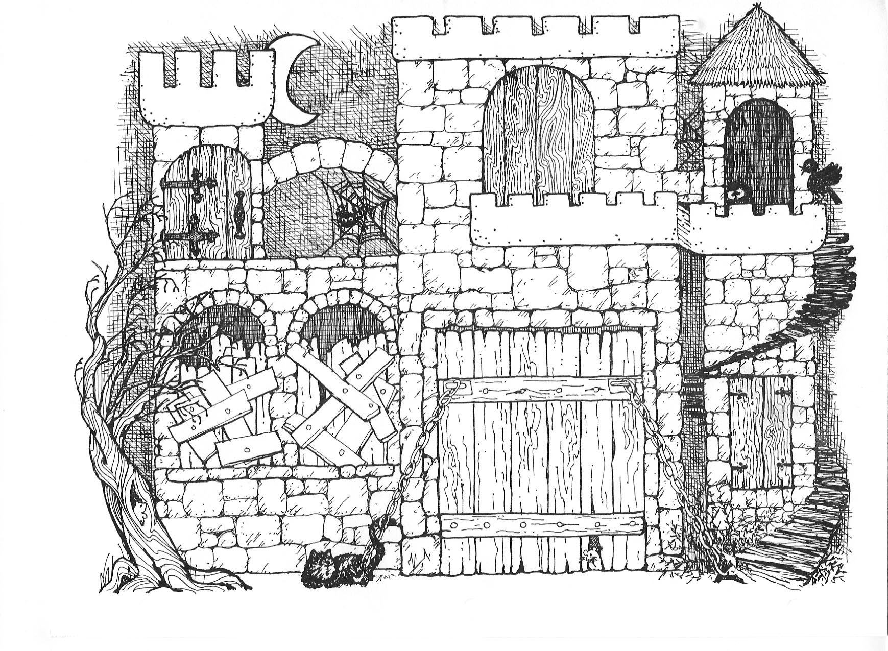 This black and white image, Halloween Castle Instructions, was donated by the artist, Chris Gunn. Click to read more about Chris.