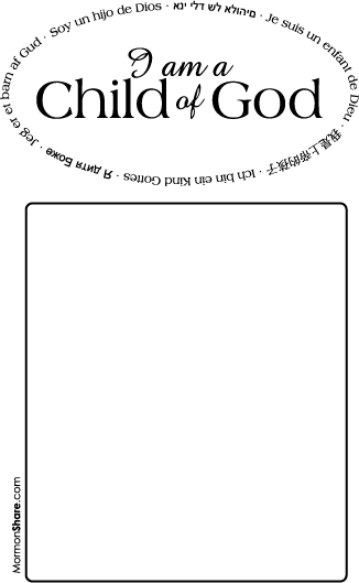 This uses our I am a child of God oval with the words I am a child of God in Spanish, Hebrew, French, Chinese simplified, Ukranian, German, and Danish.
