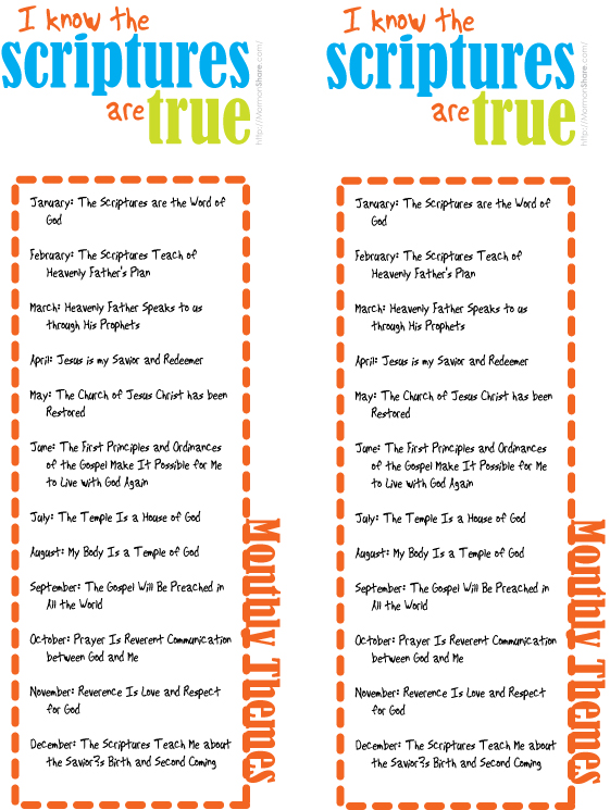 These files will help Primary leaders with the new theme, I know the Scriptures are True.