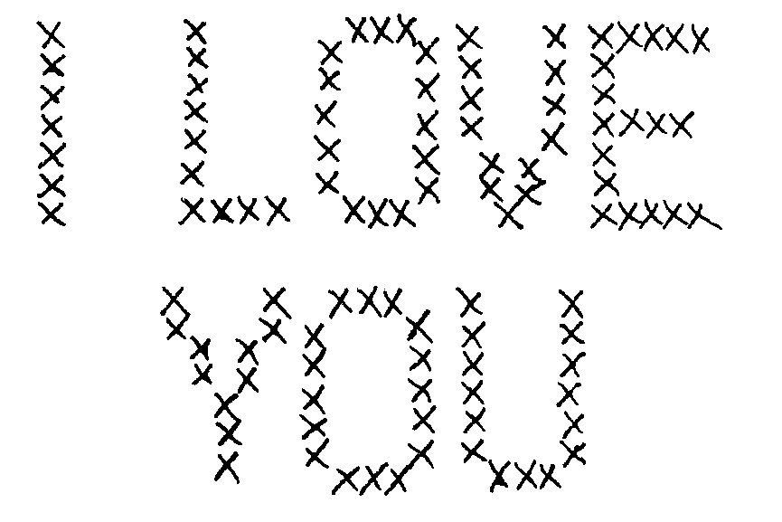 This black and white image, I Love You Cross Stitch, was donated by the artist, Chris Gunn. Click to read more about Chris.