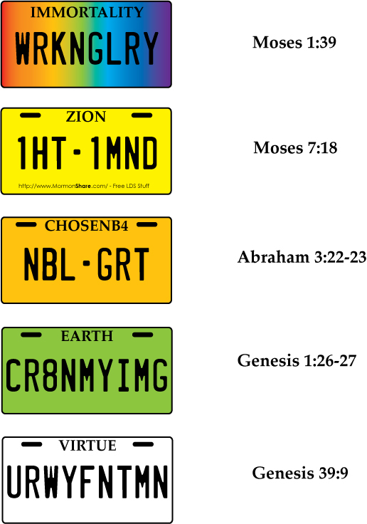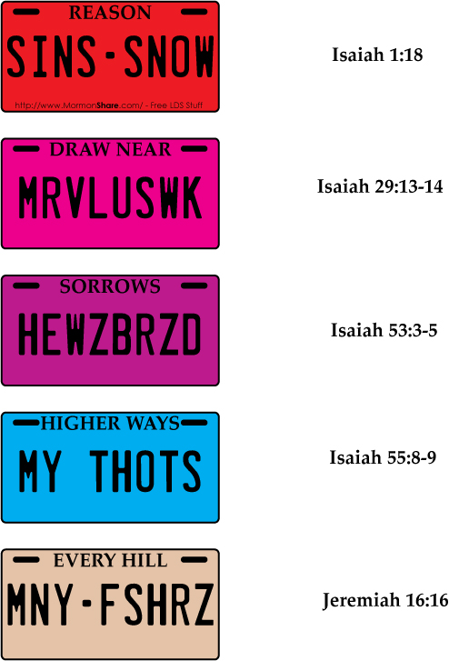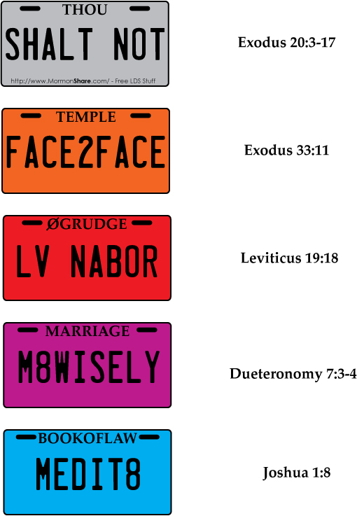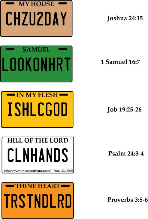 I created these license plate scripture mastery memorization aids today in preparation for my seminary class next year. They are Old Testament scriptures.