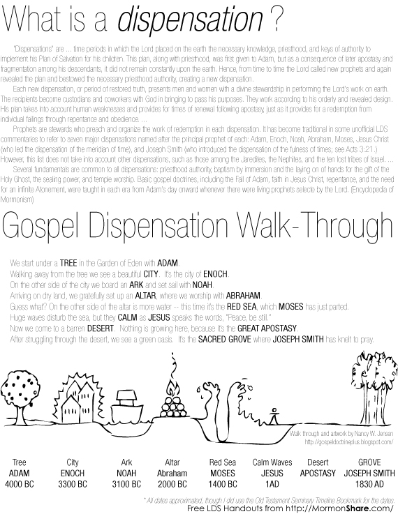 This LDS dispensations handout is based on the super cool walkthrough at http://gospeldoctrineplus.blogspot.com/2010/01/as-memory-aid-for-chronol… .  Sister Jensen’s image and idea make it easy to visualize the major gospel dispensations.