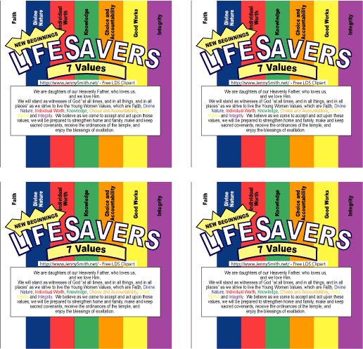 **** Suggestion: Print these wrappers on _coated_ inkjet paper so that the colors are more vibrant, like a real LifeSavers wrapper. Otherwise, the ink will bleed slightly into the paper and turn out kind of faded, like mine did. ****