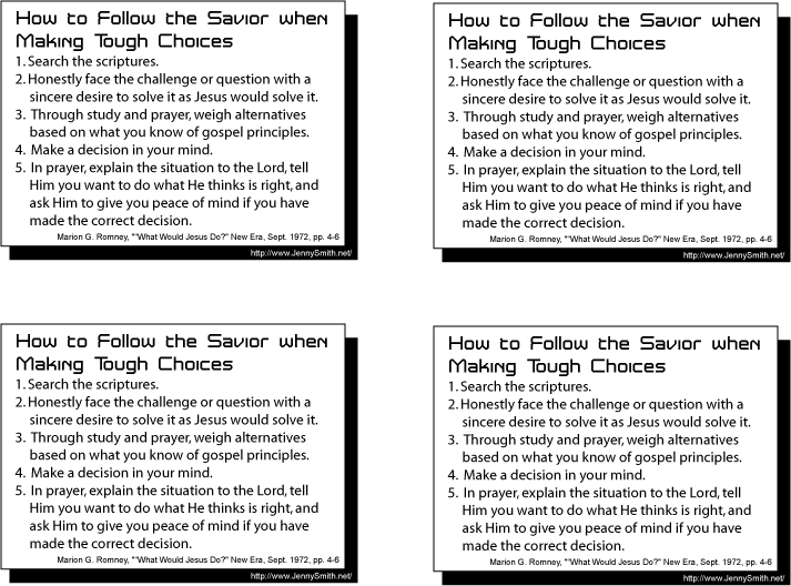 This is a summarized version of 5 points in Marion G. Romney’s article “What Would Jesus Do?