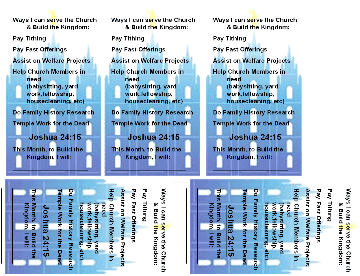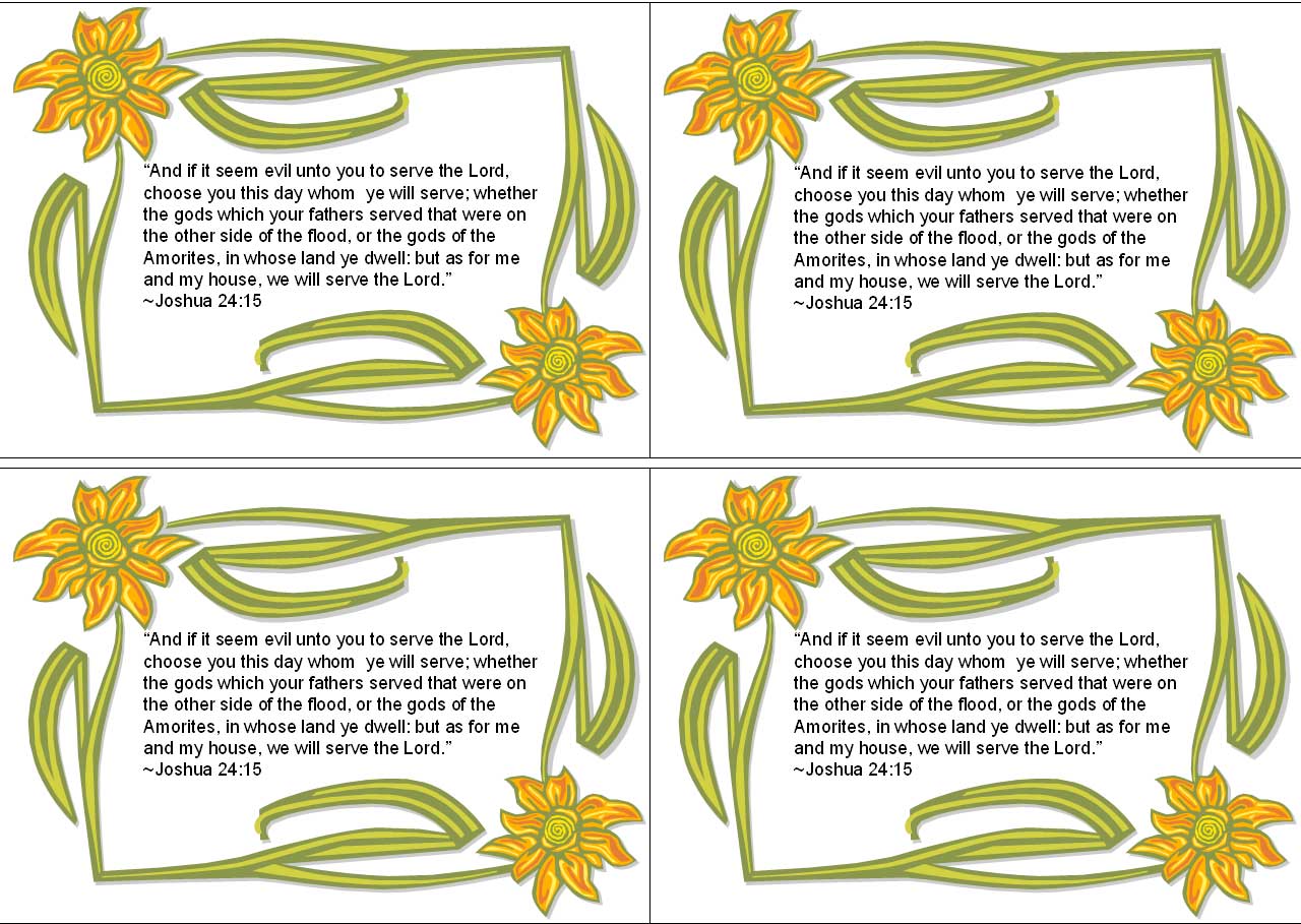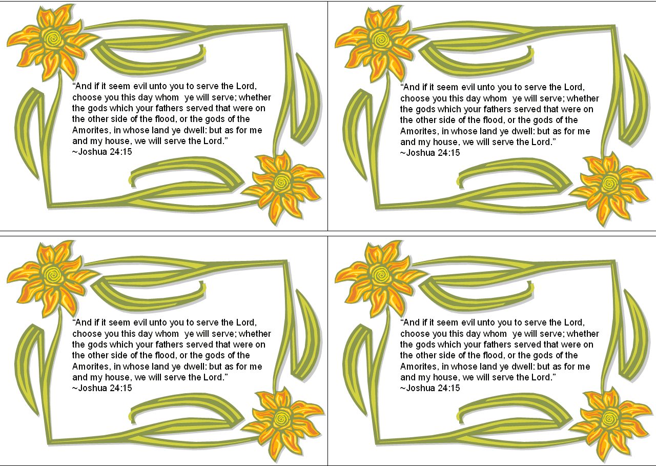 This handout was submitted by A. Wheeler–thanks! It has the quote from Joshua 24:15: “And if it seem evil unto you to serve the LORD, choose you this day whom ye will serve; whether the gods which your fathers served that were on the other side of the flood, or the gods of the Amorites, in whose land ye dwell: but as for me and my house, we will eserve the LORD.” and some a flower clipart border