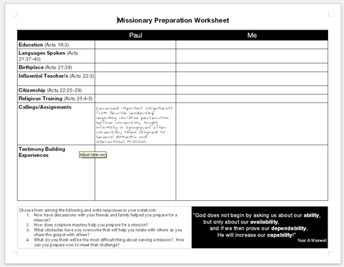 I altered it to demonstrate that students in our class are also preparing for missions right now in ways they may not have considered. I am using it as independant work while I give out report cards and meet with each student individually for a few minutes during class. They will also take the Basic Doctrines Assessment during class time.