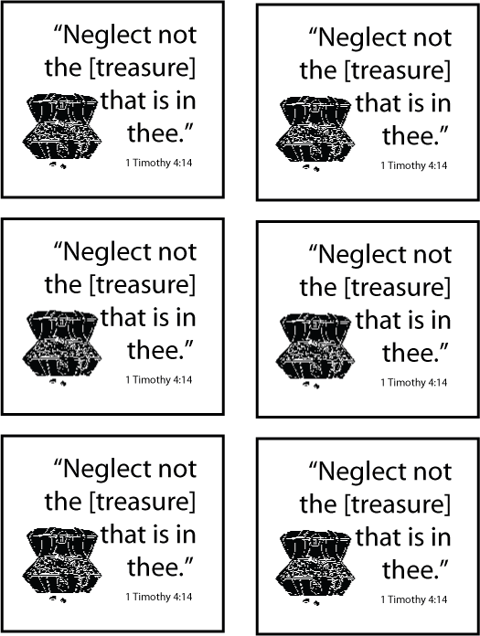 Jamie D. used this cards and changed the word “gift” in the scripture to “treasure” and attached them to Hershey’s Treasure chocolates.