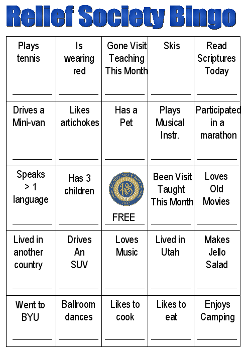 I facilitate a lot of meetings at work, so I’ve leveraged some fun icebreakers in different church settings with great results. I made this as an icebreaker for our RS Birthday Dinner, and the sisters really loved it. In fact, they didn’t want to stop playing after we had our first winner, so we allowed two additional bingo winners and one “black out” winner.