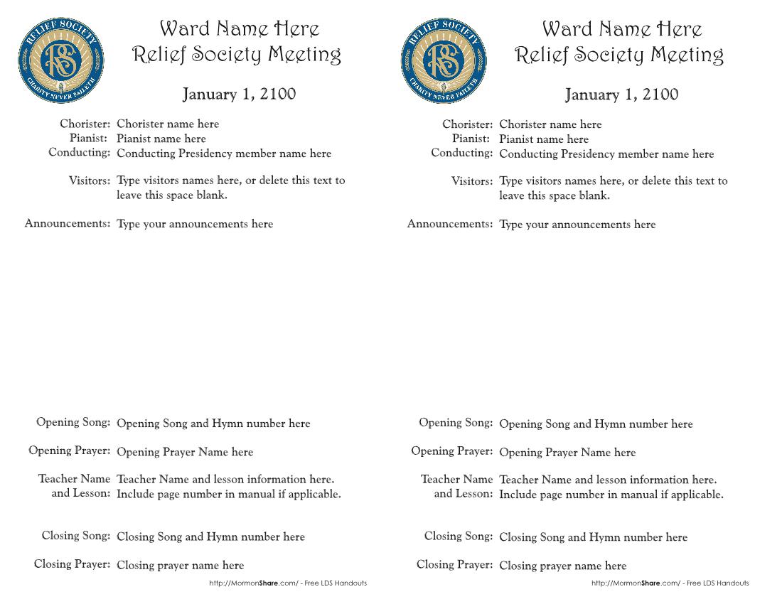 This meeting agenda is for use during any type of Relief Society Meeting Agenda. There are two styles of agenda:
