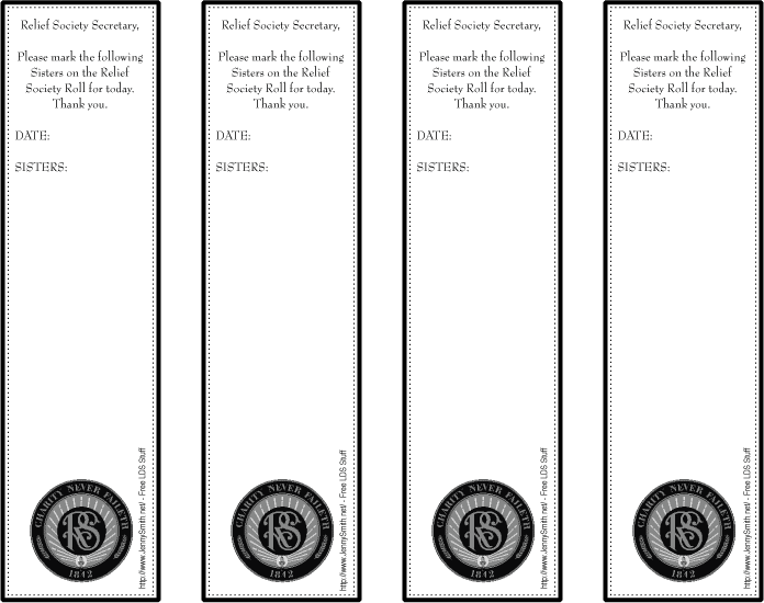 Kris says, “I made this for myself to use so that I could collect the names of the Sisters, it just helps when things get busy and saves getting scraps of paper with Sisters names and no other relevant details. … I also included a R/Soc Logo on the bookmark so that it was easily recognizable to be returned to Relief Society by YW/Primary. (Also if it was misplaced along the way, hopefully some kind soul would return it to Relief Society).”