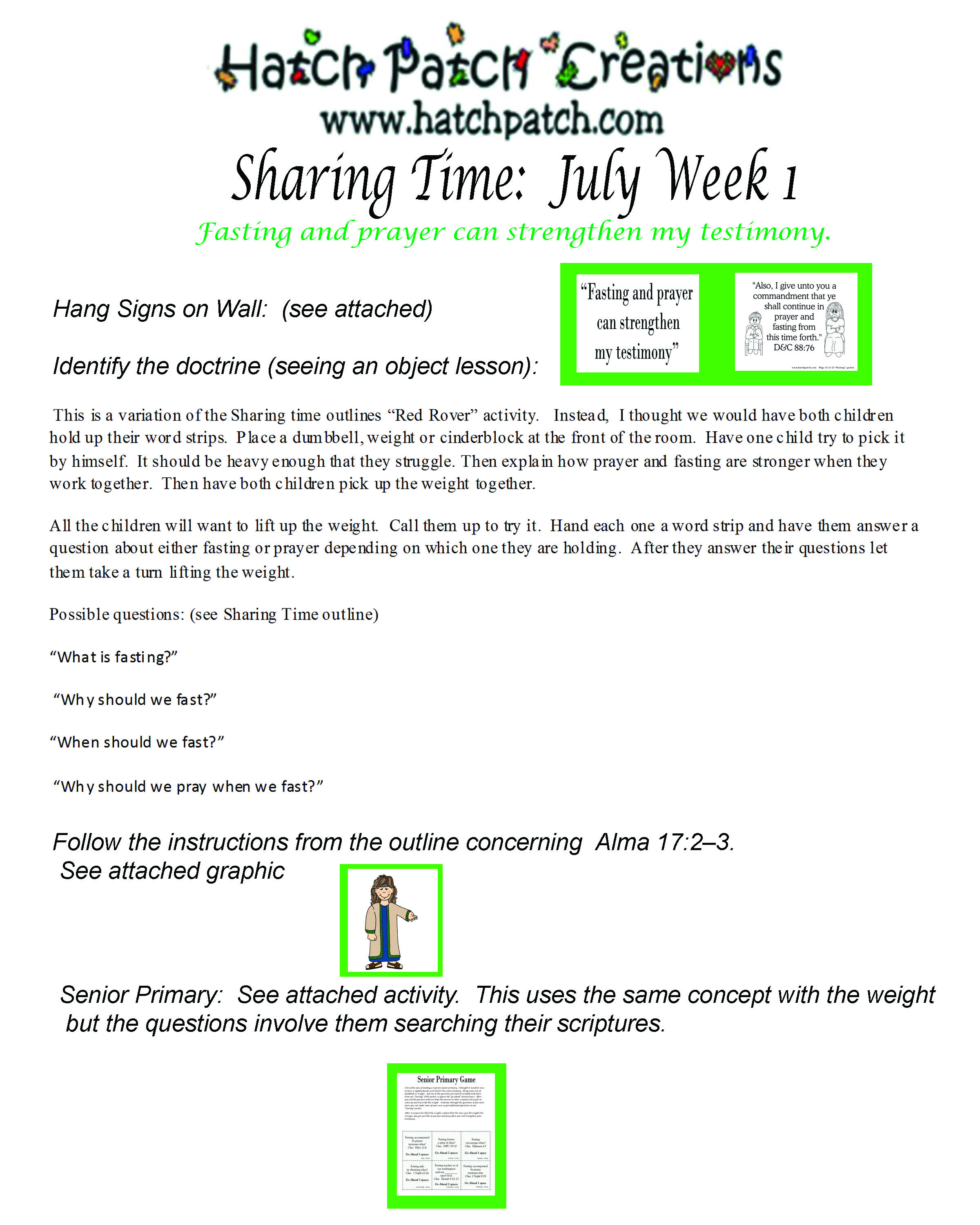 Here is a fun supplement for Sharing Time for the first week of July 2012. It is all about prayer, and fasting.