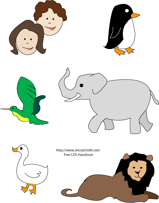 More color images of things God made. Images include a man, a woman, a penguin, an elephant, a reclining lion, and a vulture-sized hummingbird.
