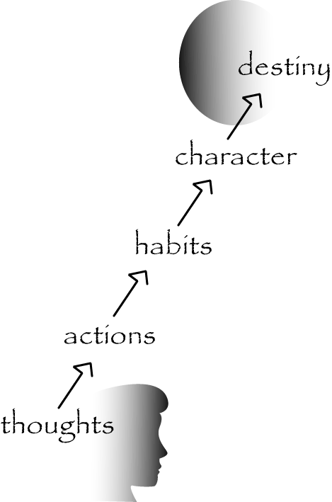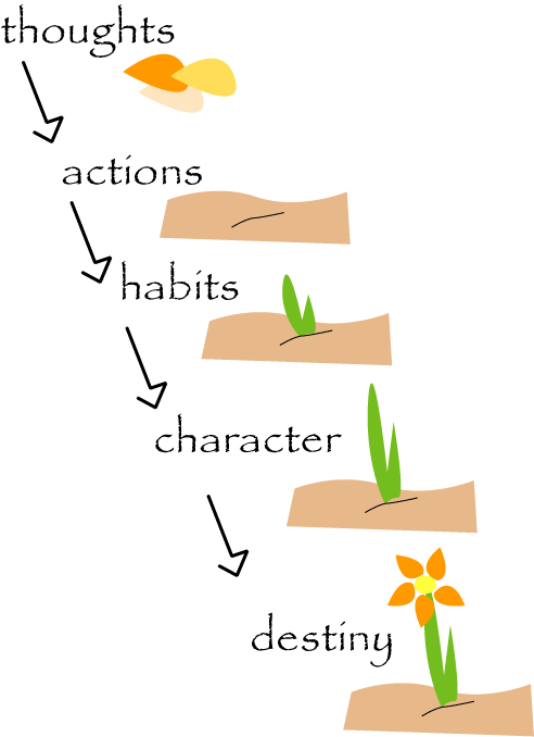 This clipart sign accompanies Young Women Manual 2 Lesson 40: Self-Mastery. It details the way that our thoughts become our destiny, so we must be sure that we always think thoughts that will ensure the destiny we desire.