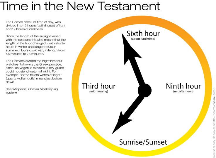This handout shows what is meant by the sixth hour of the day or the watches of the night as mentioned in the New Testament.