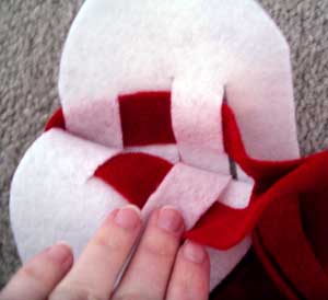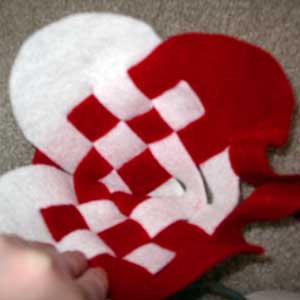 I like to double check inside to make sure I haven’t made a mistake. This is what your heart will look like with just one row (two strips) left to weave.