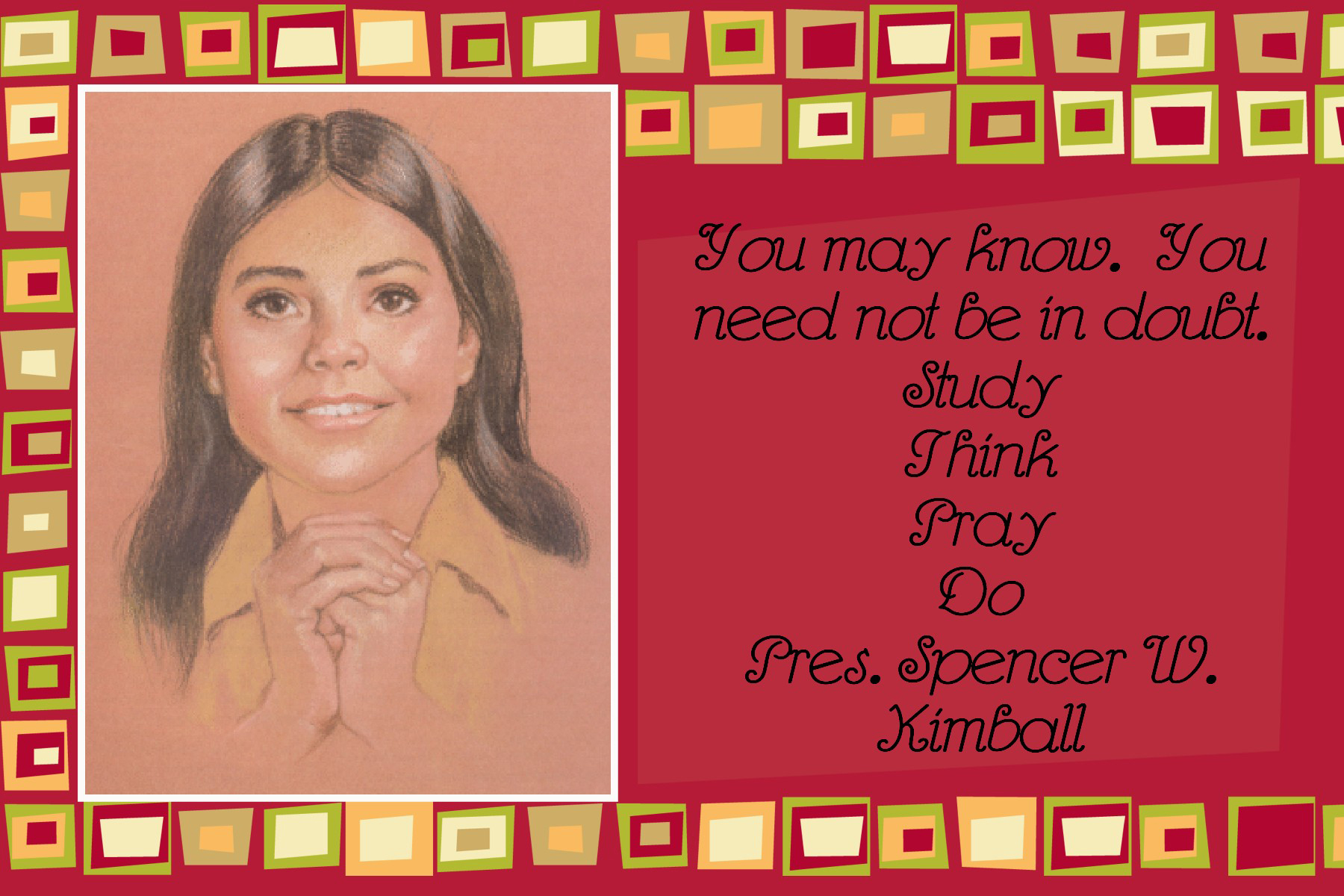 The text reads, “You may know. You need not be in doubt. Study, Think, Pray, Do. Spencer W. Kimball”