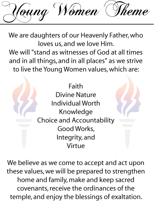 This sign has the Young Women’s Theme on it, along with some lightened images of the YW Torch.