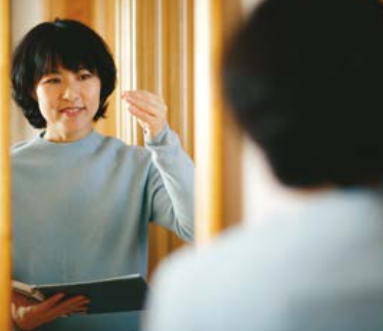 To teach a song effectively, you must know the song yourself. Practice at home so when you teach the children you can look at them, notat your book. The woman in the picture at right is practicing in front of a mirror. You might consider practicing with a mirror, too.