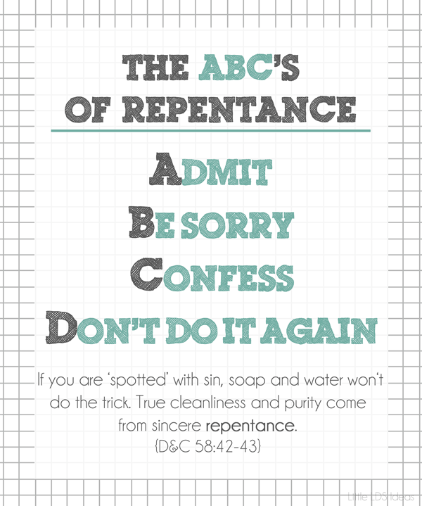 I also created a little handout to help the children remember the steps of repentance. They aren’t worded exactly like the steps in the outline, but the same idea. My husband actually used these steps while on his mission.