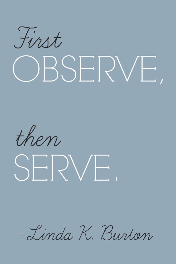 Giveaway below sponsored by TheLDSStore.com. The June Visiting Teaching Message is titled The Divine Mission of Jesus Christ: Minister. My favorite quote and thus the one that made the handout is simple, four words actually, but powerful. First observe, then serve. Linda K. Burton hit the nail on the head. We should watch out for […]