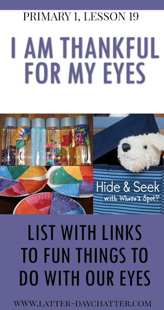 LDS.org Primary 1, Lesson 19: I am Thankful for My EyesBring in some pieces of thick cloth, enough to blindfold a few of the children. Ask them to draw something (themselves, an animal, etc). After they’ve done it blindfolded, take off the blindfold an…