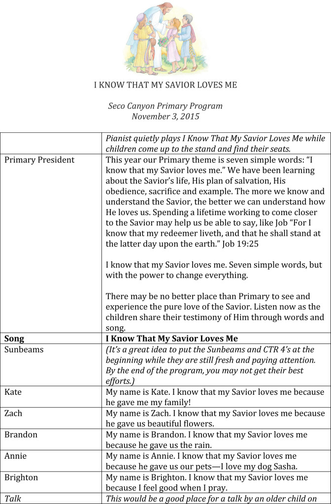 I’ve been in Primary for almost 15 years! Sure, there were a few breaks for Young Women’s, so my total time in Primary is probably more like 12 years, but, you know. That’s just a lot of years in Primary. And a lot of years of working on Primary programs–the sacrament meeting when the Primary shares […]