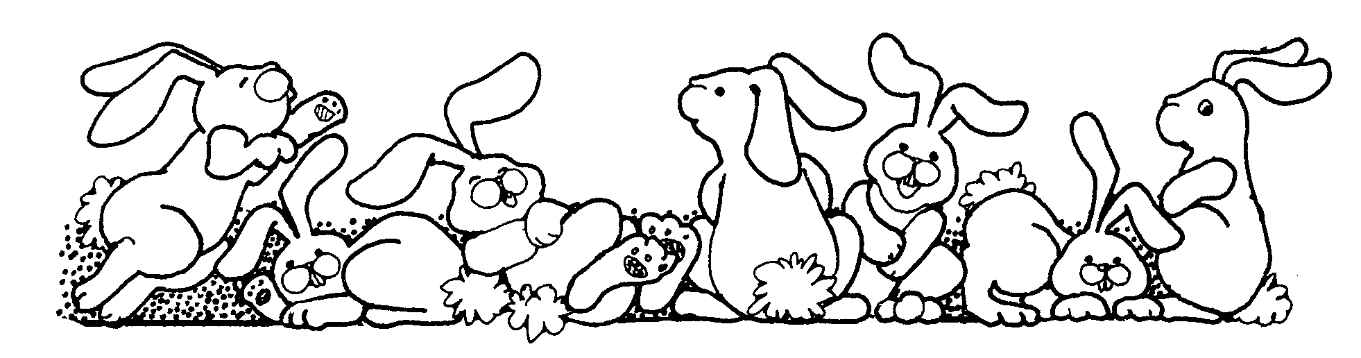 Rabbits Lots Jennifer Smith January 25, 2013 This black and white image, Rabbits Lots, was donated by the artist, Chris Gunn. Click to read more about Chris. LDS Printables bunny, cg, Easter, rabbit, trim