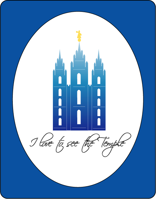 This is a full page sign inside a blue oval frame with the text “I love to see the temple” underneath a clipart image of the LDS Salt Lake Temple in Salt Lake City, Utah, USA. Available in GIF or PDF.