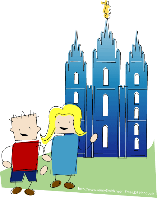 This is a full color clipart image with a picture of a male and female child in front of the Salt Lake Temple in Salt Lake City Utah. Available in GIF or PDF.