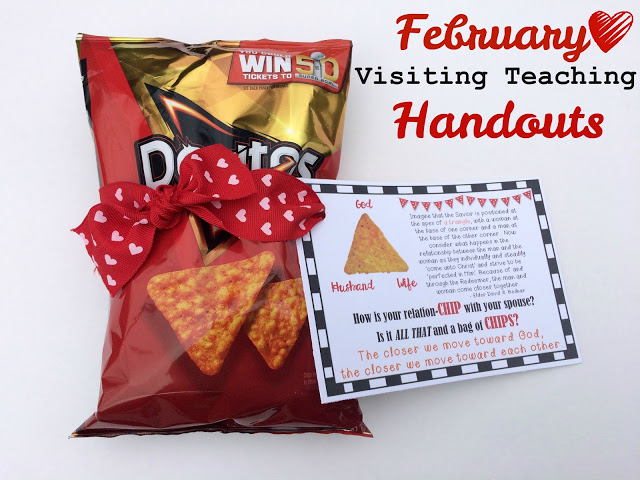 This month’s Visiting Teaching message is:Marriage is Ordained of GodMy FIRST handout is based off of Elder Bednar’s analogy with a triangle. And who doesn’t automatically think of a DORITO when they think of triangles…am I right? {Ha!}&nbs…
