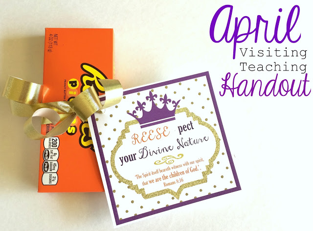 This month’s Visiting Teaching Message is:Daughters of Our Eternal FatherI immediately thought of the Young Womens value Divine Nature when I read this message. And I LOVE the scripture included from Romans 8:16.Oh – – and have I ever mentioned how muc…