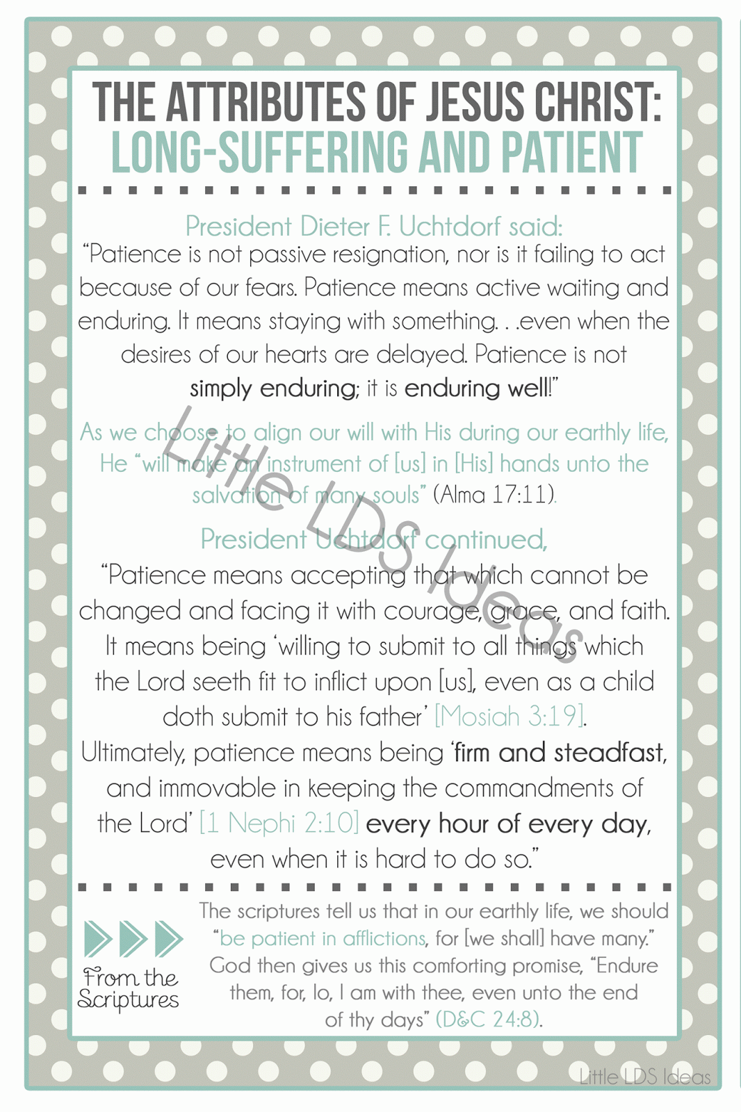{Visiting Teaching} March 2015- The Attributes of Jesus Christ: Long-Suffering & Patient