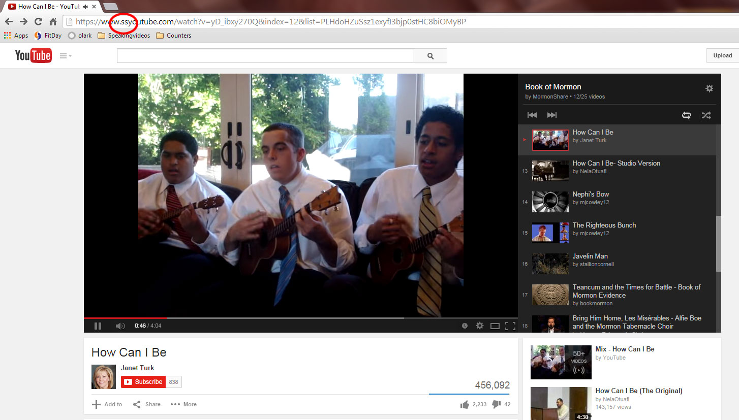 This super cute video is of some missionaries singing a fantastic song “How Can I Be (Like Nephi)”. To download it, simply type ‘ss’ in front of the youtube.com part of the URL and press enter.